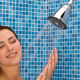 The Oxygenics system uses patented technology that sends water through an accelerator fin then continually introduces air into the high-velocity water creating a powerful oxygenated spray. Oxygenics uses less water overall, but since it plumps each drop with oxygen, you won't notice the difference. Oxygenics showers use as low as 1.5 gallons per minute without sacrificing pressure.