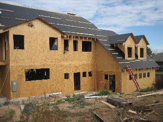 View of the first floor from the south side of the house. Radiant tubing is visible where the garage cement slab is poured.